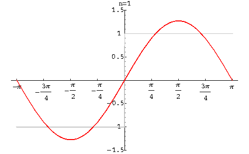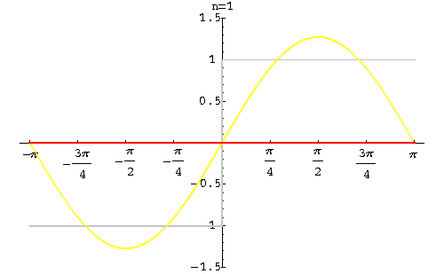 Looking at the graphs of the partial sums, we see that a strange phenomenon is happening. Indeed, when x is close to the point 0, the graphs present a bump. Let us do some calculations to justify this phenomenon.